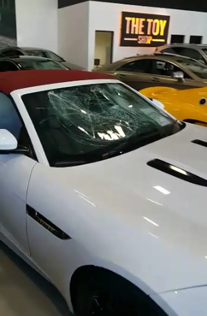 CCTV footage – which went viral on social media – shows the skollies entering the dealership and smashing car windows and windscreens with wrenches and mops.