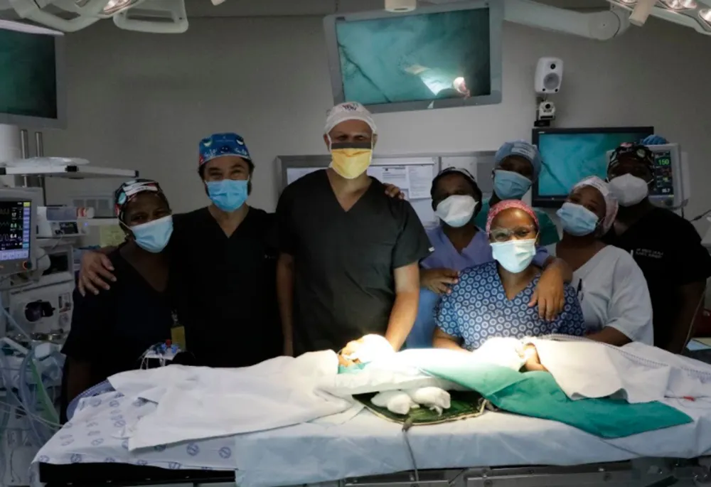 “It’s the rarest form of conjoined twinning,” the surgeon explains.