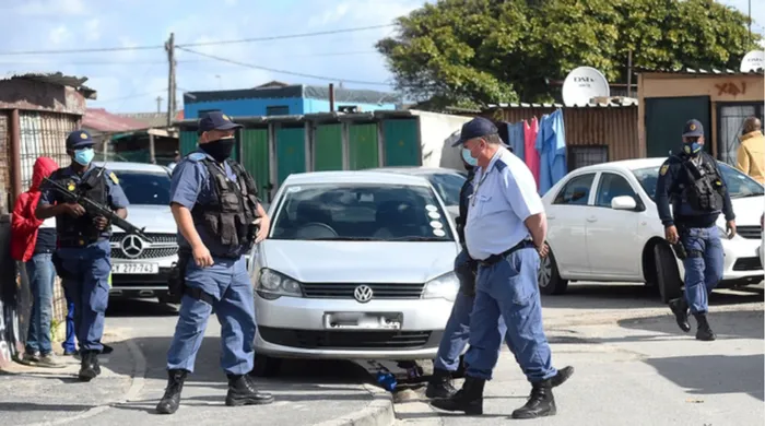 Police outside the Tea&Tea Cash Store in Site B Khayelitsha where a shooting took place. Picture: Phando Jikelo/African News Agency(ANA)