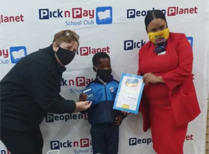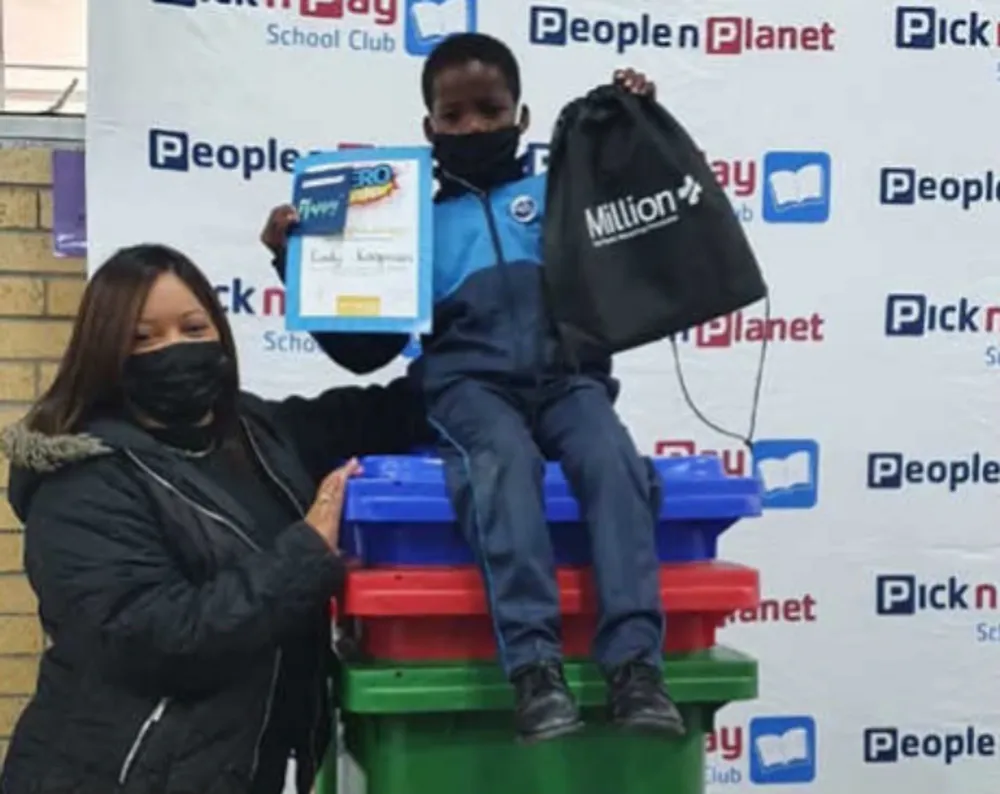 Pick n Pay School Club visited the Grade 2 learner at his school, Eindhoven Primary in Delft, where he was awarded with an Environmental Hero Award for his enterprising recycling business, which supports his family and “employs” 10 other local youngsters.