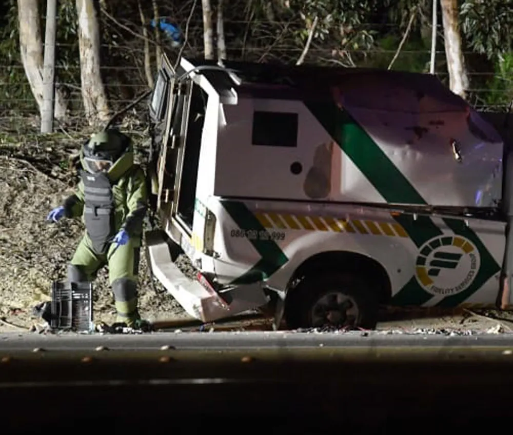 “The driver and crew fled into the nearby bushes to take cover. Unknown suspects allegedly used explosives to gain access into the armoured vehicle's safe.