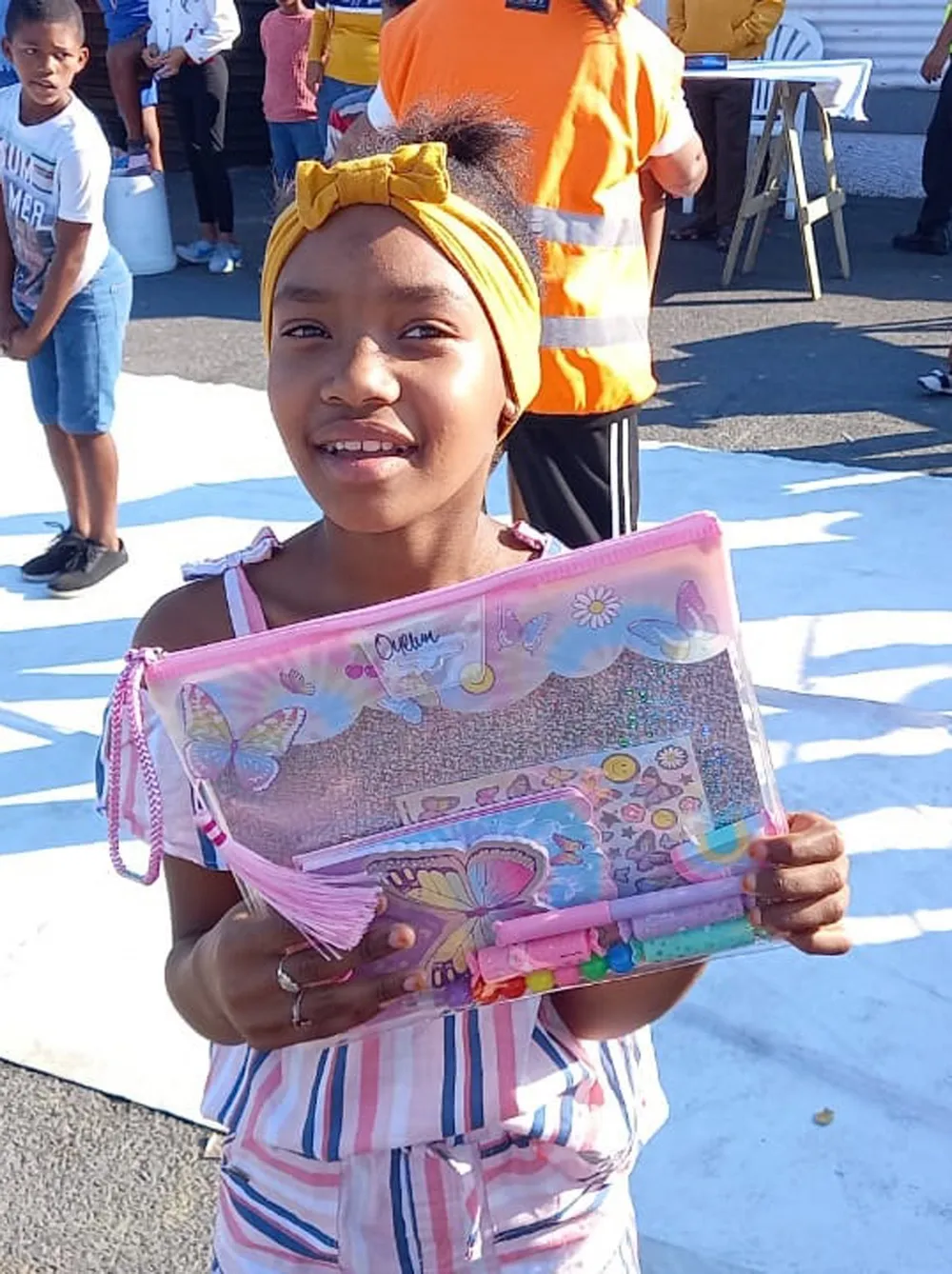 One of the winners, Leanthe Makoba, 11, says she is happy to have won the journal set.