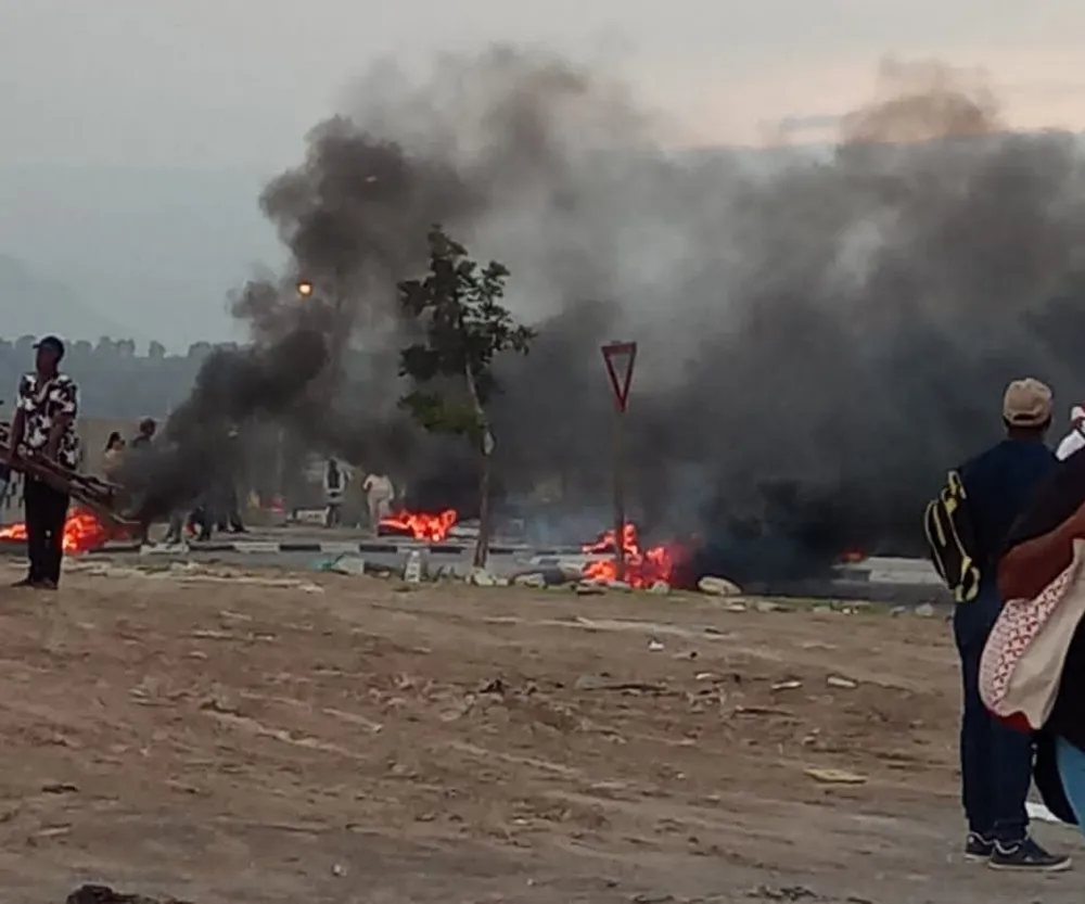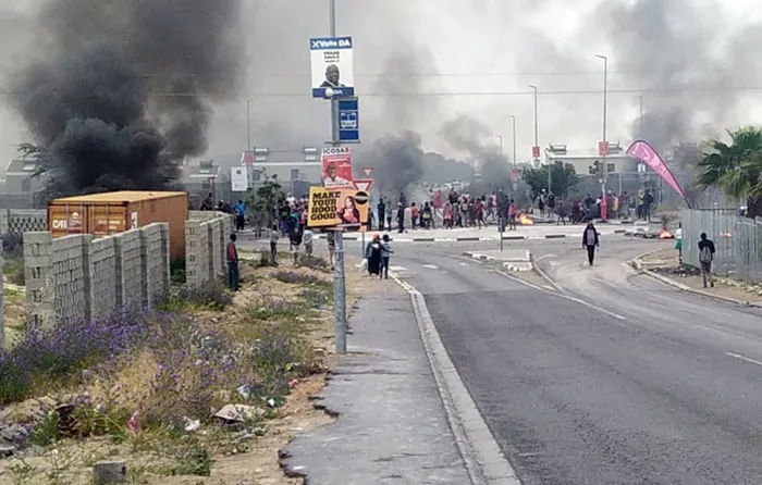 UPSET: Forest Village residents burning tyres in Eerste River. Picture: Mandilakhe Tshwete