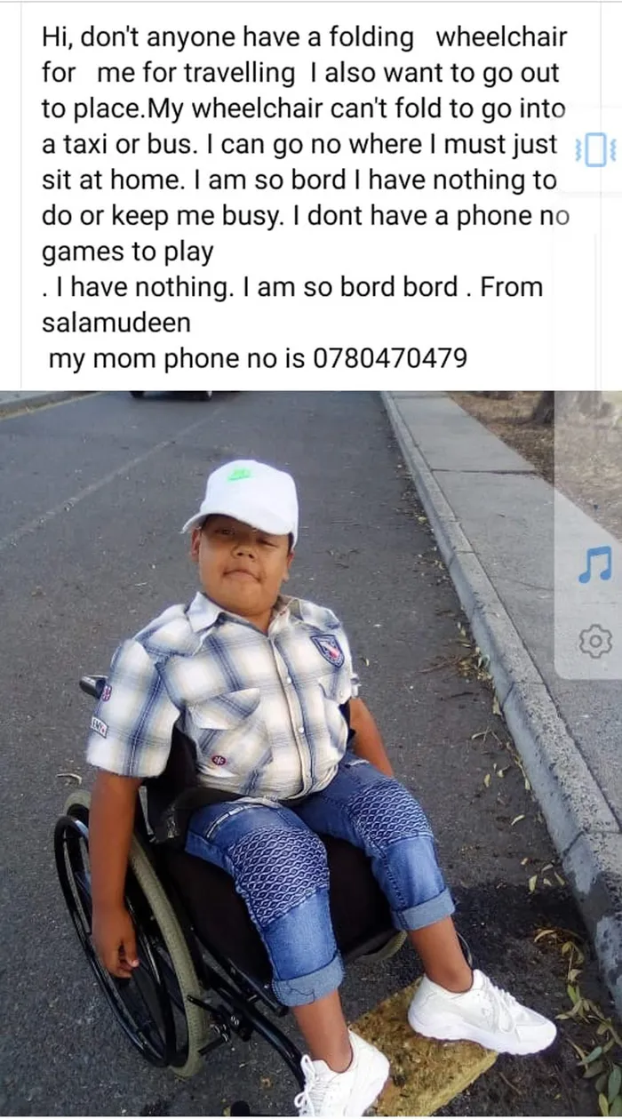 Salamudeen Hendricks, of Lentegeur, skelmpies took his mother’s phone and posted a plea for a folding wheelchair on Facebook.