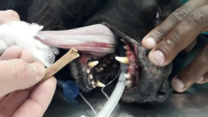 “Her owner attempted to pull the bone out but soon realised that he was ill-equipped for the task.”