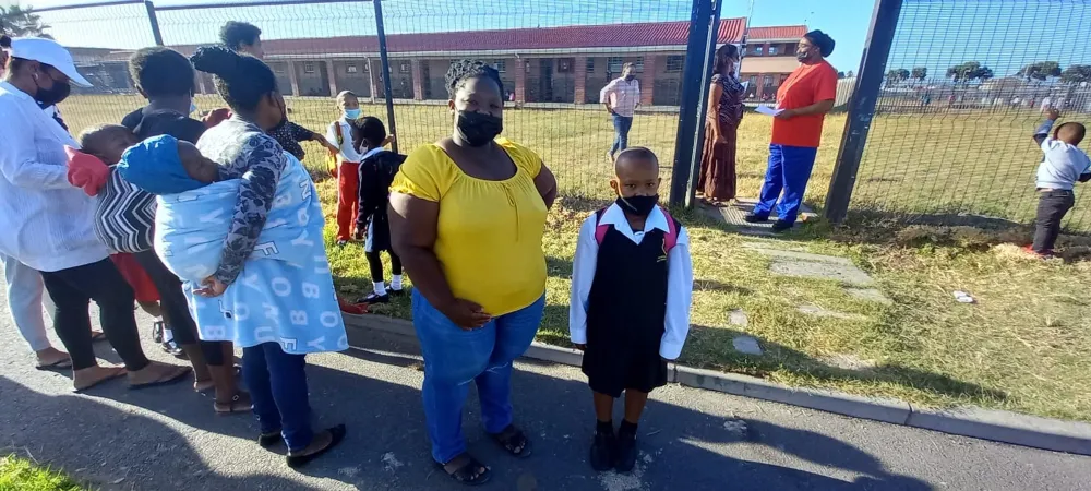 Seaview Primary School in Rocklands, Mitchells Plain, was quiet as children and parents arrived, but 10 minutes before the 8am bell, tension started to build as teachers collected the newbies at the school gate.