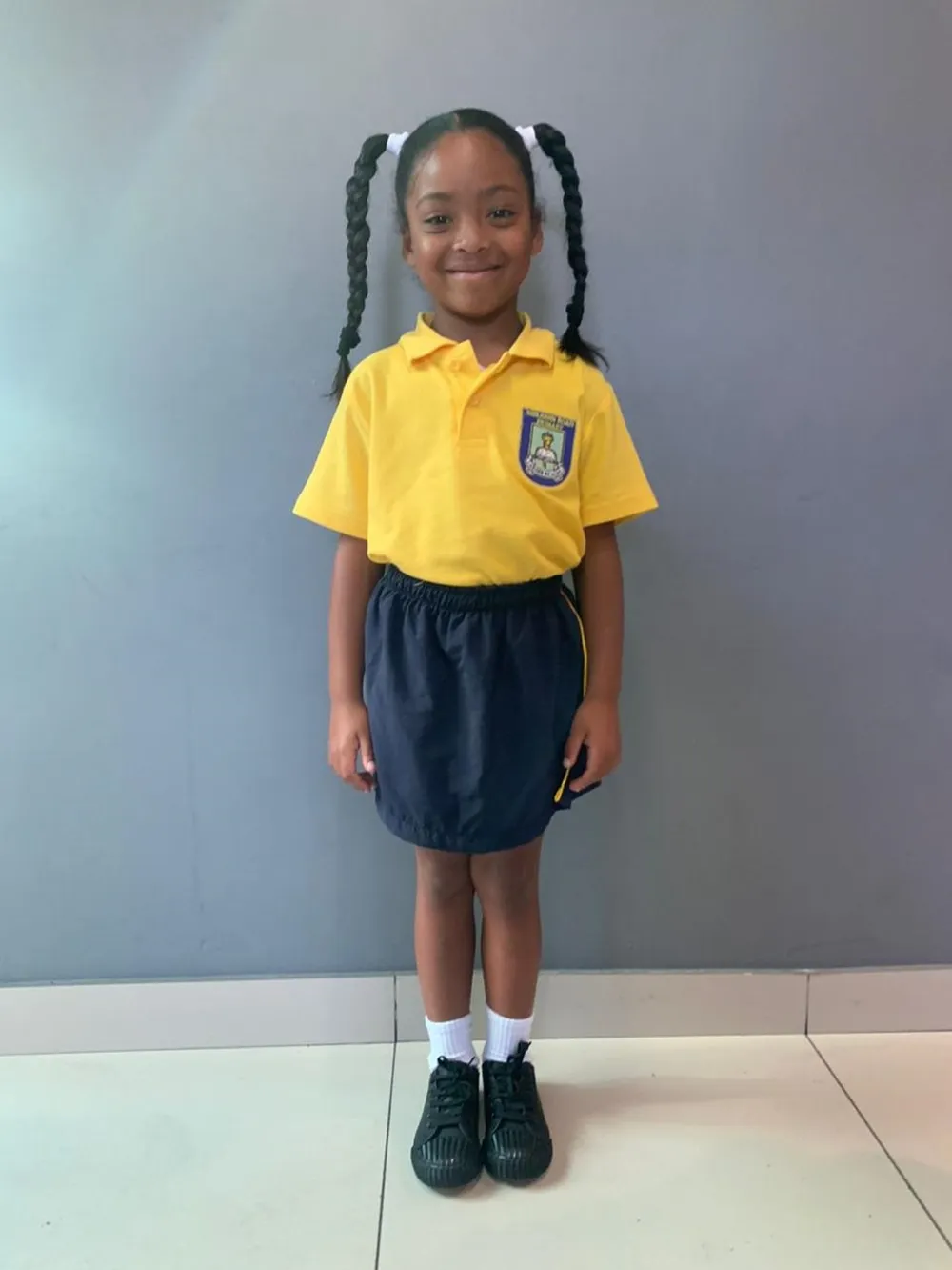 Taaliah Abrahams rocked up with confidence at Plumstead Preparatory School with mom Zayaan and dad Tawfeeq.