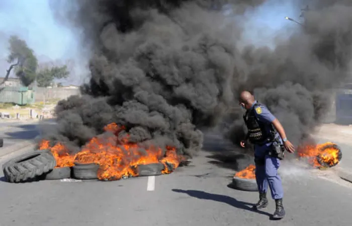 When they saw a truck, which they thought was there to demolish the building, mense wysed the driver to leave and then started burning tyres and barricading the road.