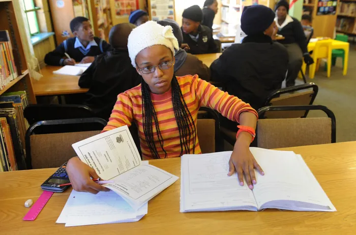 Bonolo Mtengwane busy with her homework at Desmond Tutu Community Library in Munsieville, Mogale City. Dumisani Sibeko