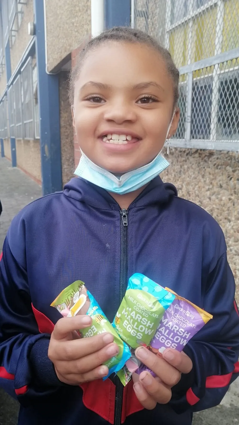 Grade 2 pupil, Farah Lawrence, said she was very happy: “I got three Easter eggs, this is so exciting. Thank you to the people who brought these nice treats for us.”