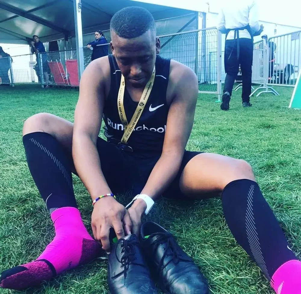 A Mitchells Plain man ran the Two Oceans Marathon in school shoes on Sunday.