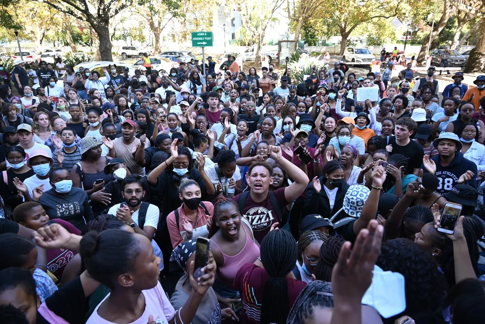 On Monday, hundreds of students protested at the university over the alleged racist incident at the Huis Marais residence early on Sunday morning.