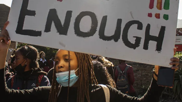 OUTRAGE: Fish Hoek High pupils protesting. Picture: Nikesh Cohen