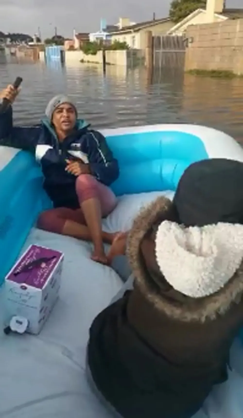 Some residents in Bishop Lavis decided to make the most of the flooded streets and videos of people floating in inflatable boats and even swimming went viral.