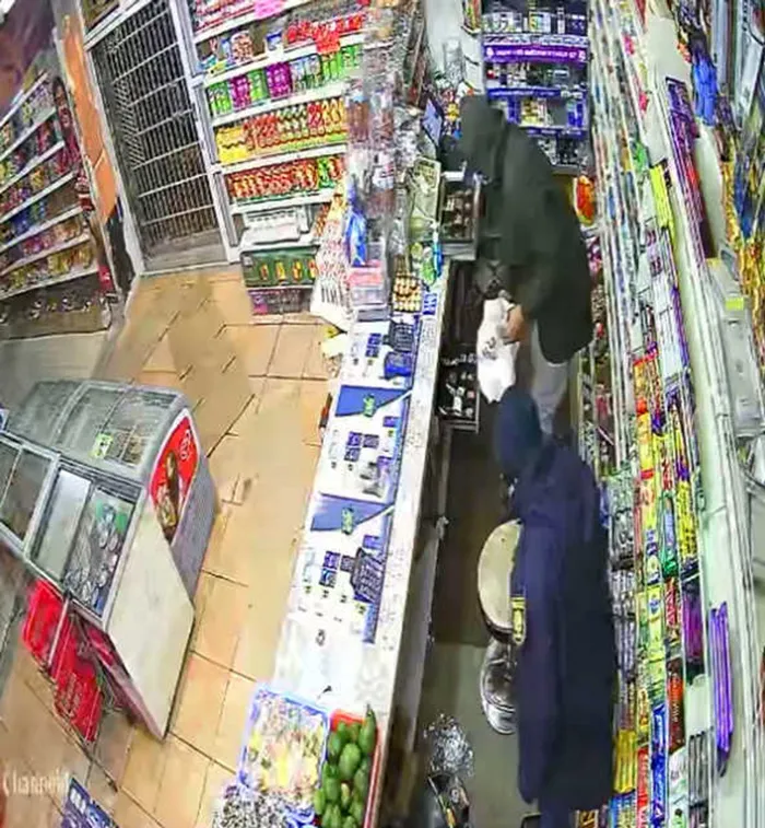 Shocking video footage of the robbery at the New Opera Supermarket in Torrid Road, Surrey Estate, shows the skelms holding the staff and customers at gunpoint and looting the store.