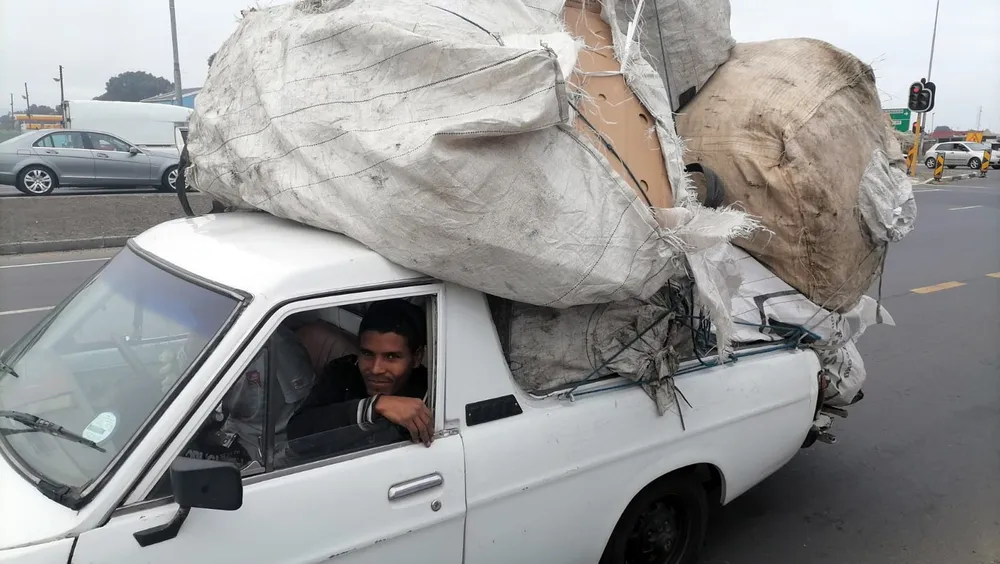 Driver Mickayl Meyer, 21, from Valhalla Park, who collects scrap and recyclables with his friend, says a bakkie loaded with scrap will only bring in about R500 a day, half of which will now be spent on fuel.