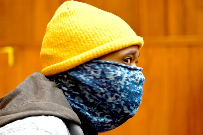 Standing in the dock on Tuesday, Mzingeli covered his face with a buff to avoid being photographed as the press filled the courtroom.