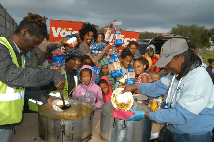 MEAL TIME: Parents for Change dishing up tasty soup and akhni for the Scottdene commmunity. Pictures: Mandilakhe Tshwete and Jack Lestrade