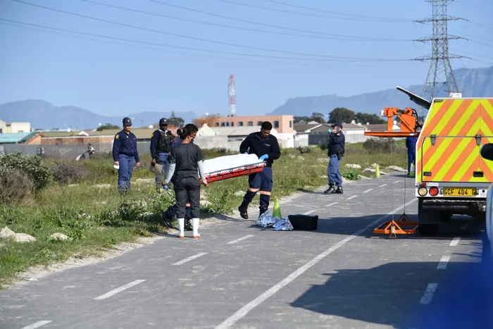 GRUESOME SCENE: Body was found along Erica Drive, Belhar. Picture: Leon Knipe
