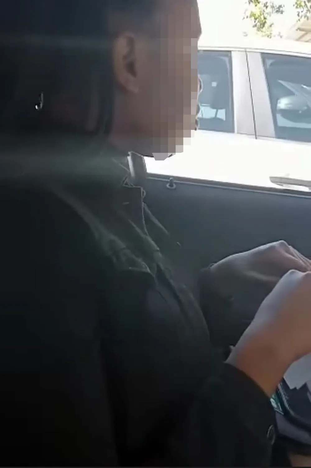 In the clip, which was shared nearly 2000 times, the driver captures her sitting in the passenger seat holding a cellphone and a bank card.