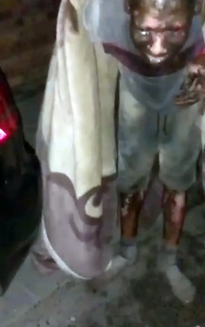 In a video clip, residents can be heard trying to get sloffies for one of the ouens while he struggles to keep a blanket over his kaal lyf.
