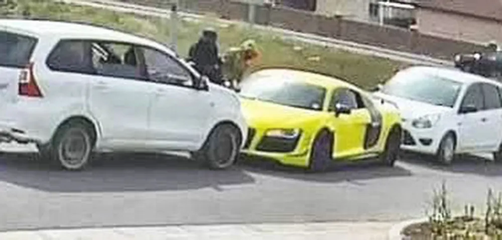 Dramatic: Her larney Audi R8 in street. Picture: Supplied