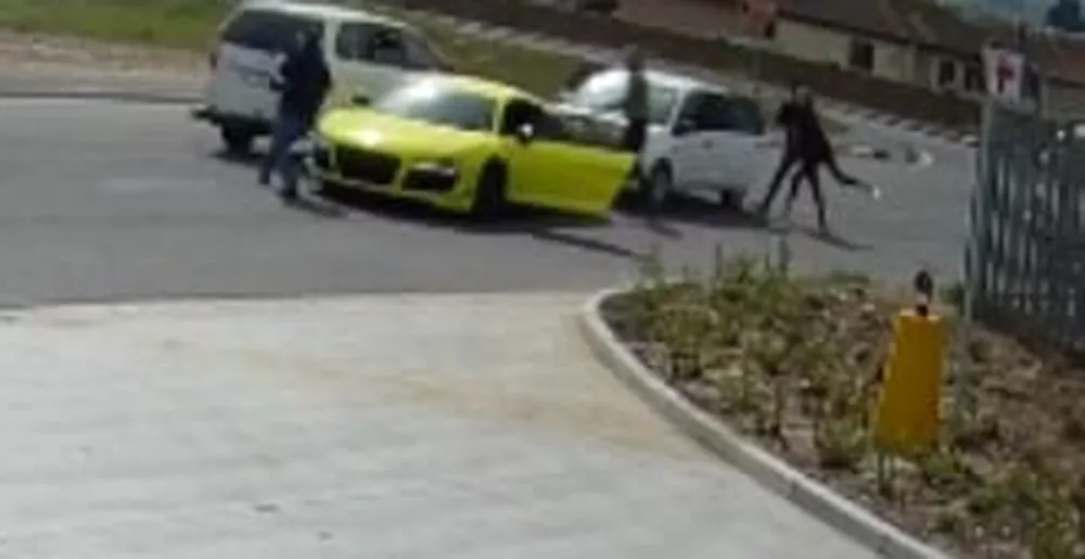 The dramatic incident was captured on CCTV, showing the brave vrou fighting off two attackers as they grabbed her from her larney Audi R8.