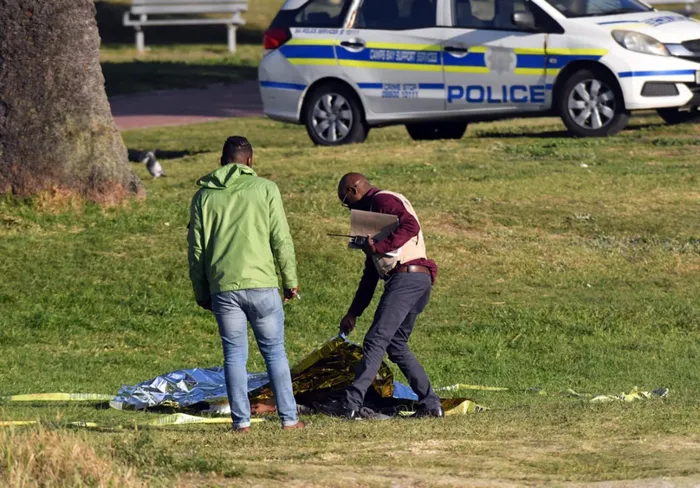 One of the victims shit dead on Camps Bay beach on Wednesday. Pictures: Leon Knipe