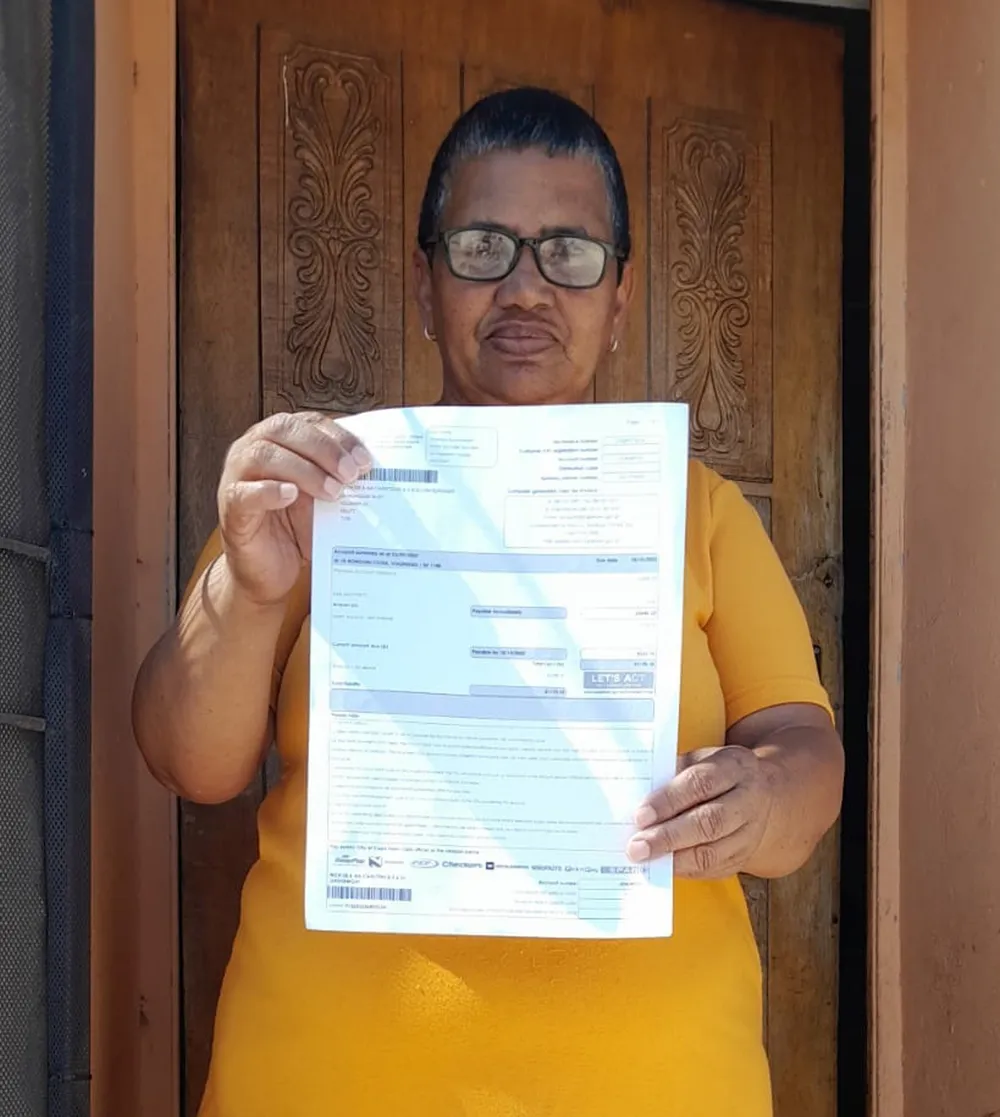 Wendy Carstens, 59, says she has no idea where the huge bill comes from as she has a low-consumption metre at her house in Voorbrug.