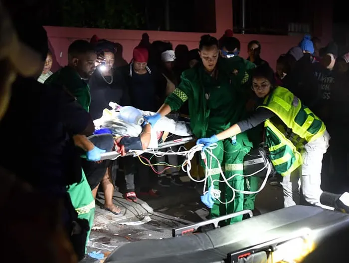 CLOSE CALL: Buttonita Matthee, 34, wheeled away by paramedics. Picture: Leon Knipe