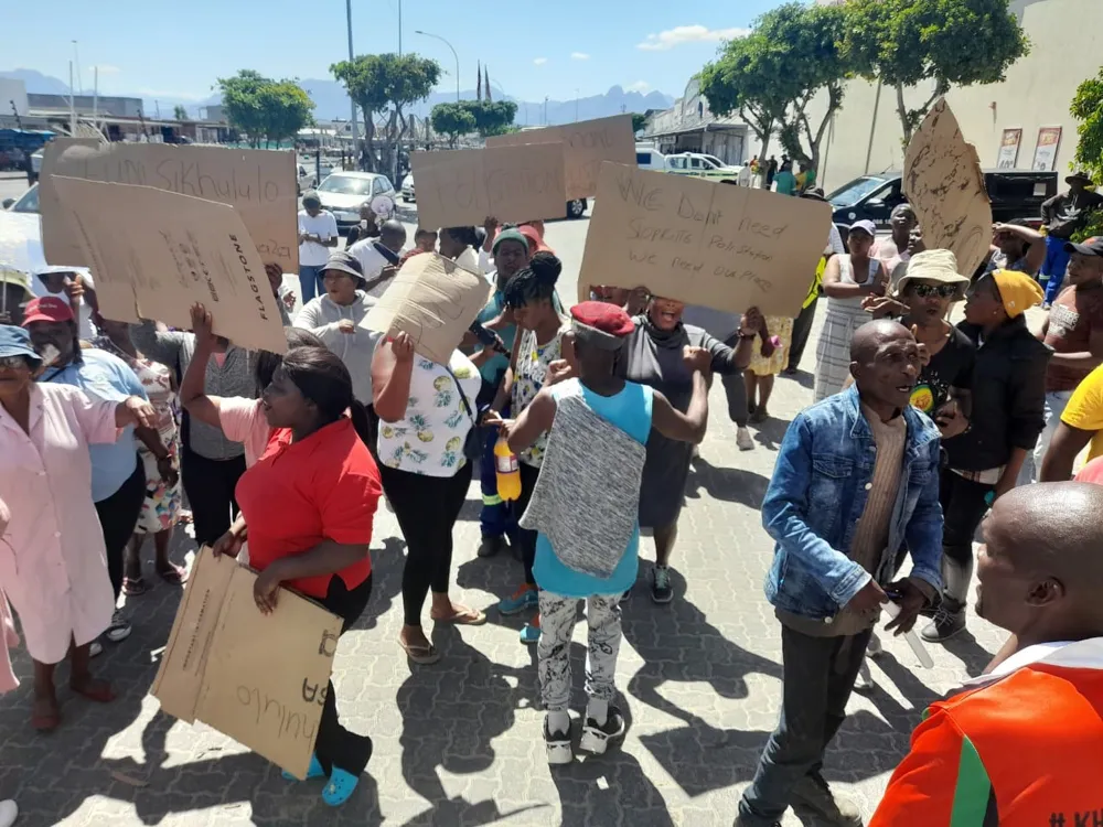 On Thursday afternoon, the Makhaza residents went to the mobile police station which is located in Desmond Tutu Hall to protest for a new cop shop.