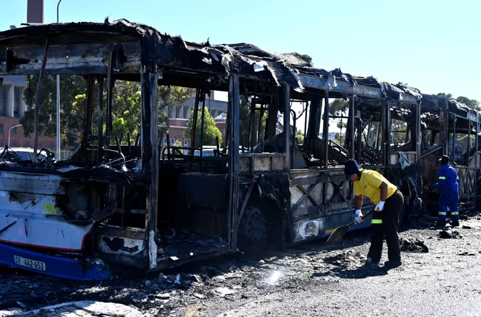 WRECKED: Bus near Bhunga Avenue, Langa. Picture: Ayanda Ndamane / African News Agency (ANA)