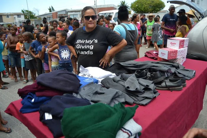 Maria Pienaar, 71, was among about 150 parents who were assisted when volunteers of Shirley’s Giving Hands organisation surprised them in Gabriel Court in Scottsdene on Monday.