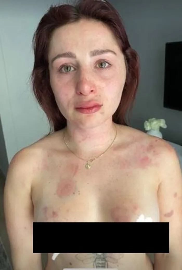 Photographs show Anna covered with large purple and blue bruises all over her body.