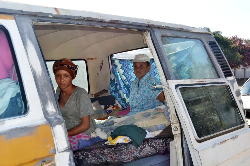 “Now I have to sleep outside in a Kombi. I am so stressed out, some people come here and give us food.”