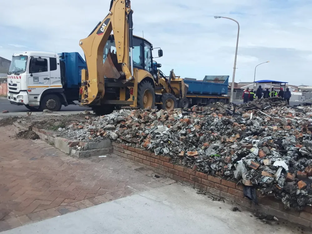 Rocklands residents are rejoicing at the sounds of construction vehicles cleaning up the dump site left behind by tikkoppe who stripped the Shoprite shopping complex to the ground since it burnt down in December last year.