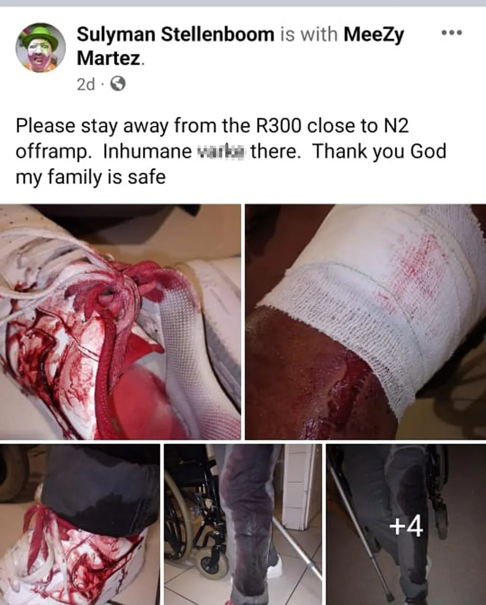 “Once my family and the car were safe I went to Mitchells Plain Day Hospital to get medical treatment as the blood was just flowing and flowing. I reported it to Mitchells Plain SAPS.”