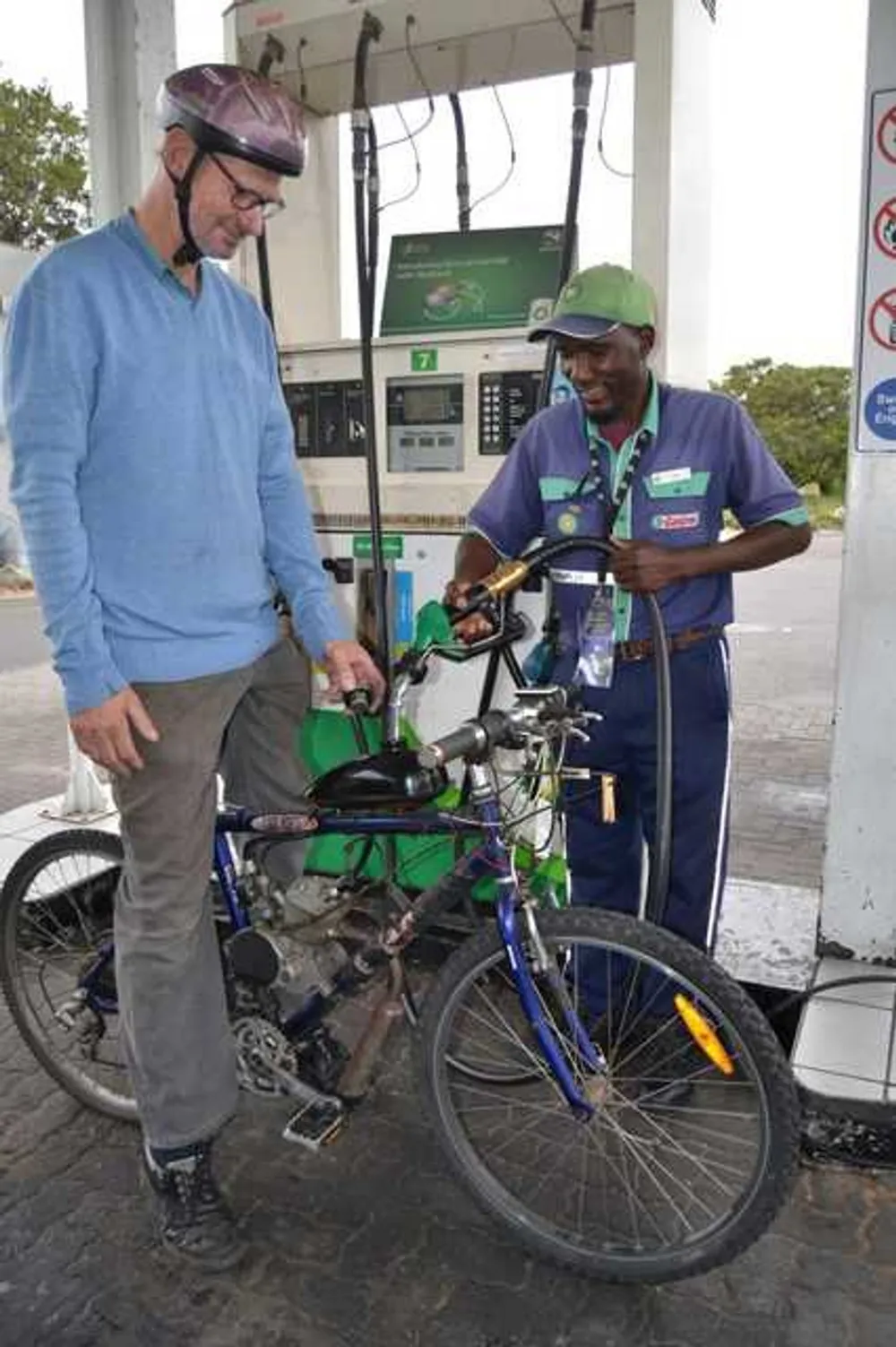 Petrol attendant Edgar Hombe says Willem is quite a sight: “The only thing is that I must keep my eyes on this tiny black petrol tank, so that it does not overflow.”