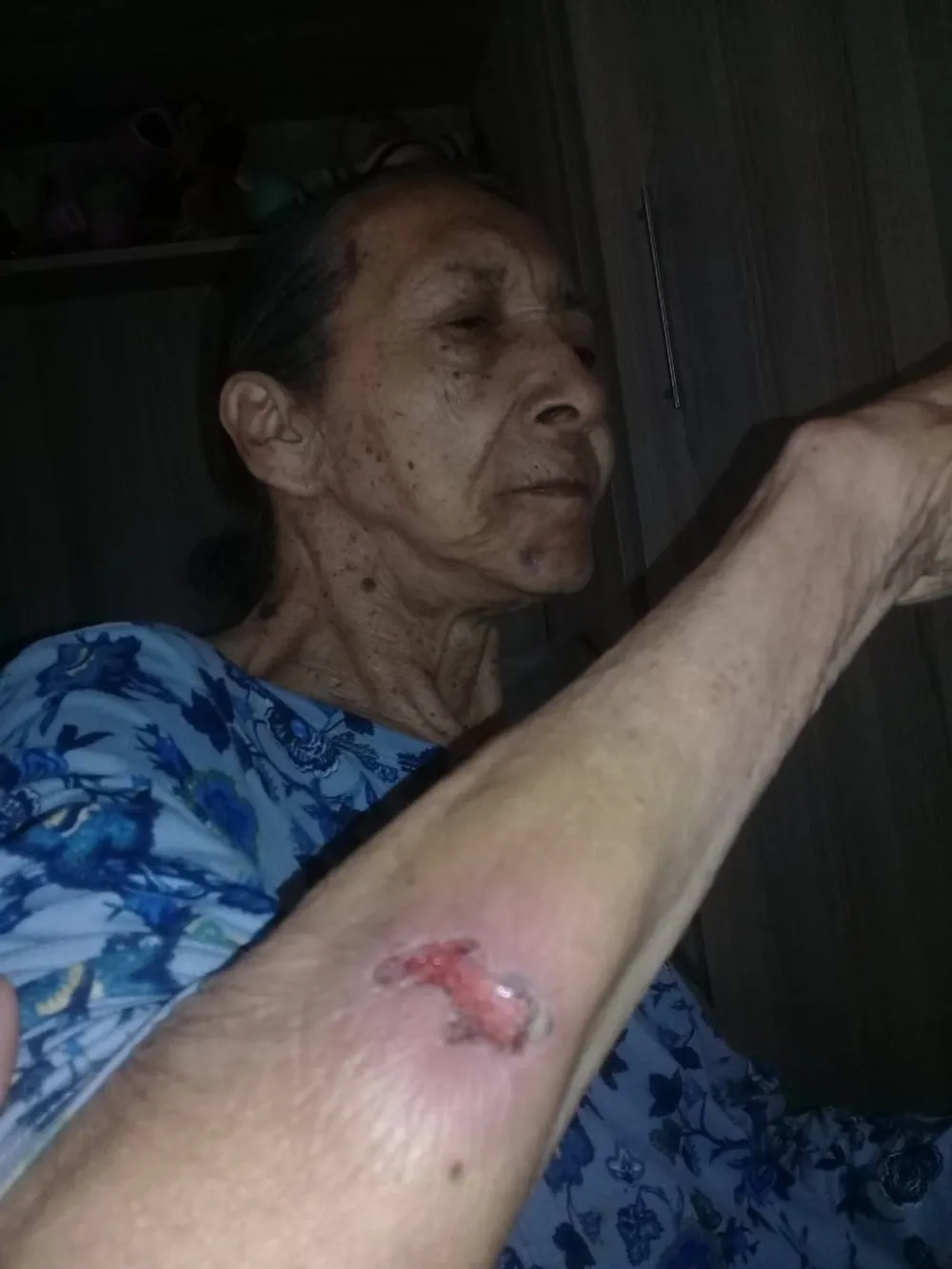 He says his ouma had a blue mark on her chin and a raw open wound on her arm.
