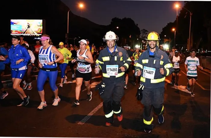 Firefighters Jermaine Carelse and Renaldo Duncan completed the 21km Two Oceans Half Marathon in full firefighting gear, to raise funds for VWS.