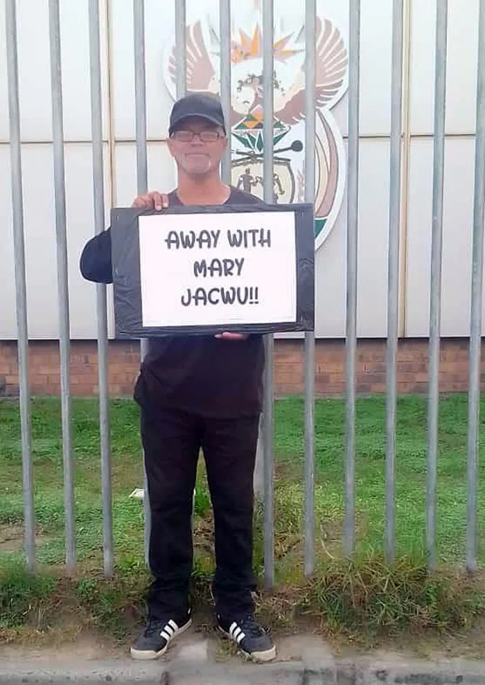 REMOVAL: Cornelius Basson outside Mitchells Plain Magistrate’s Court protesting against magistrate. Picture: Tracy-Lynn Ruiters
