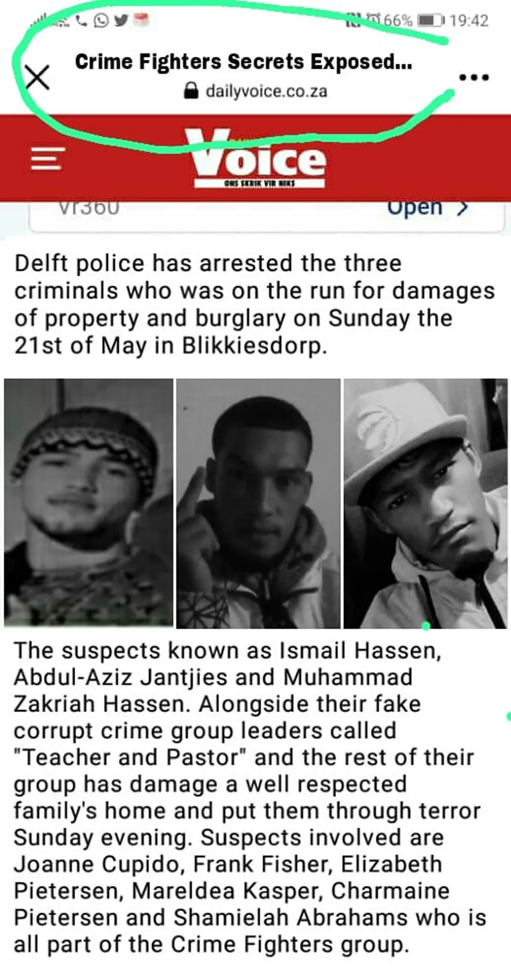 A fake post purporting to be a Daily Voice news story has been circulating on social media, claiming that three young men from Blikkiesdorp in Delft were gevang after being on the run from police.
