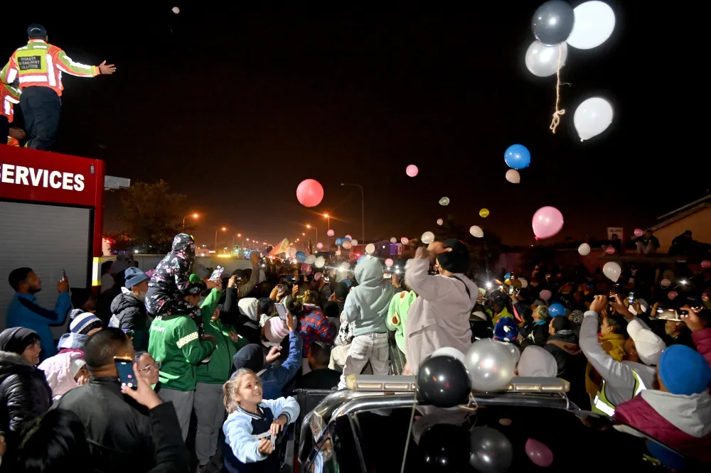On Monday aand, mense of all ages held candles and released balloons while bikers formed a guard of honour for the fallen pupils.
