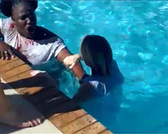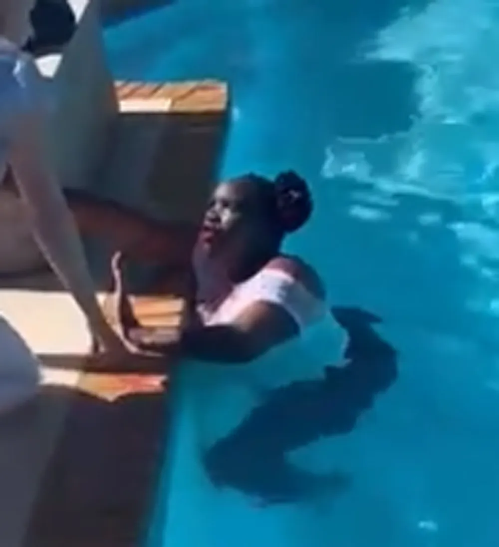 “Accused [Ntombizodwa] then pushed him into the swimming pool and slapped him. [She] then damaged his wife’s cell phone. The suspect [Ntombizodwa] was arrested,” he said.