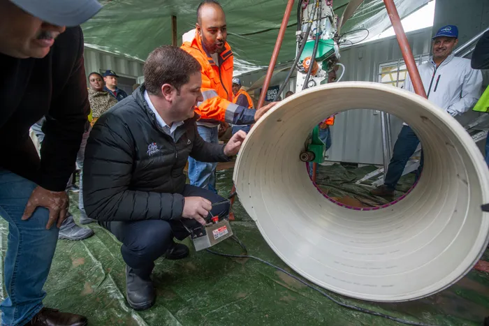 Mayor Geordin Hill-Lewis inspected progress on the major R539m Cape Flats Bulk Sewer upgrade currently under way to rehabilitate 28km of sewer pipeline serving more than 300 000 households, making this the largest project of its kind undertaken in South Africa. Picture: Armand Hough/African News Agency (ANA)