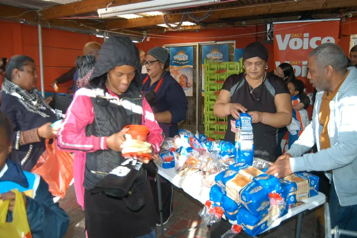 BAIE DANKBAAR: Residents collect their meal parcels.PICTURES: JACK LESTRADE