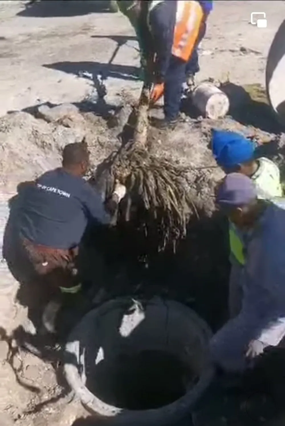A tree is the latest unlikely object to be removed from sewage drains on the Cape Flats.