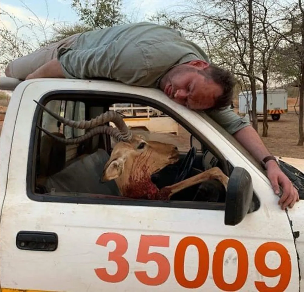 Le Roux caused a stir in September 2019 when he posted a picture of the bloodied animal behind the steering wheel of his bakkie while he himself lay on top, pretending to be dead after the bokkie apparently crashed into him.