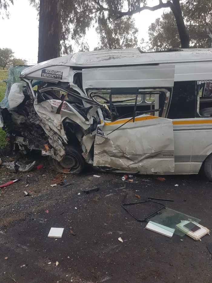 ER24 spokesperson Russel Meiring said emergency services arrived at the scene around 9.07am to find the wrecked taxi upright in the middle of the road.
