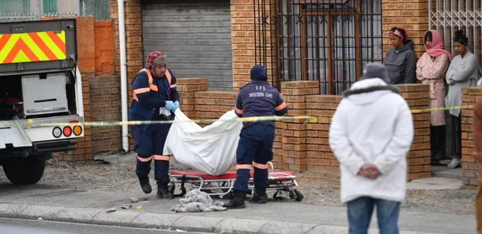 TRAGEDY: Toufeeq’s body removed from the scene in Mitchells Plain.PICTURES: LEON KNIPE
